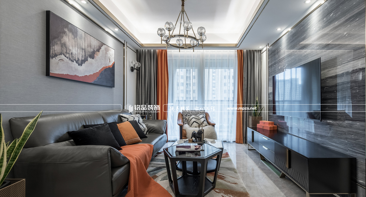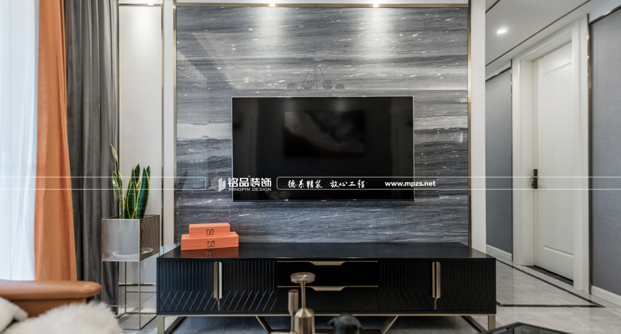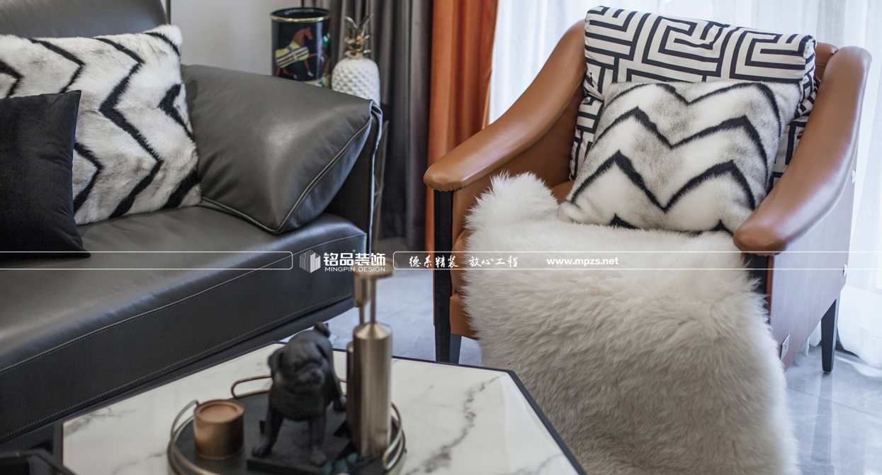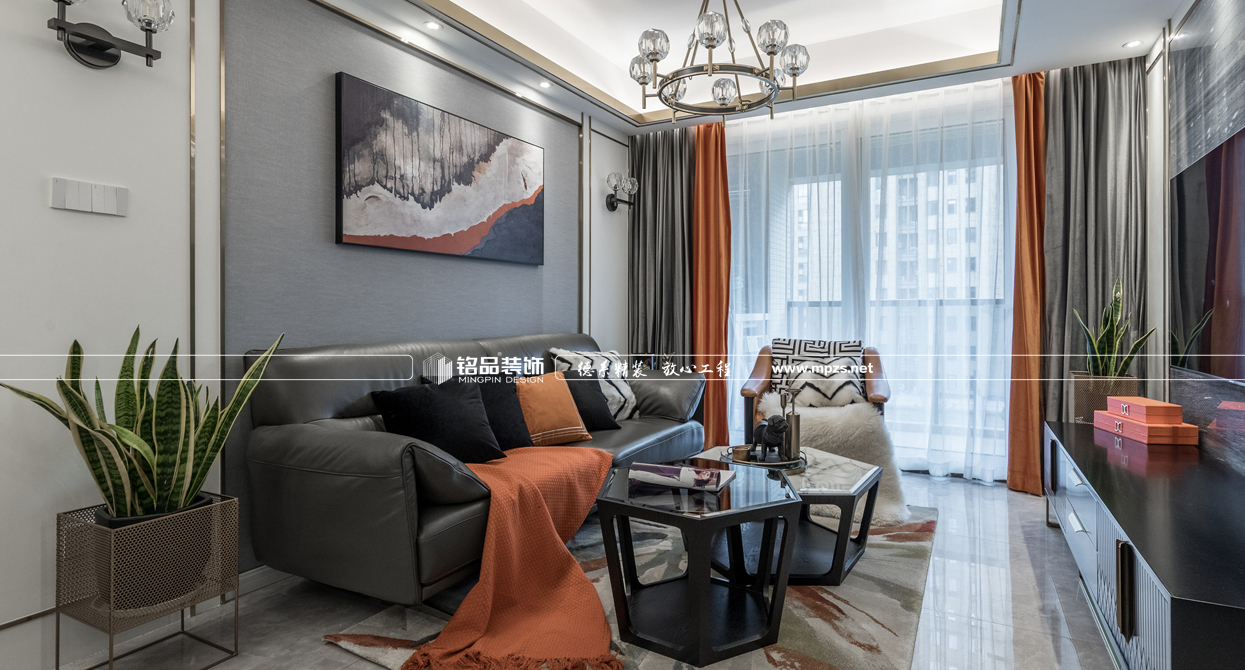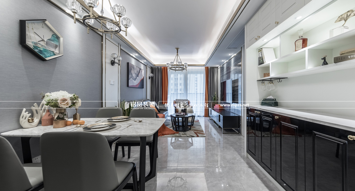 现代风格的装修从设计出发点以人为本为中心,创造功能合理、舒适优美、满足人们物质和精神生活需要的室内环境!户型结构方形构图、黑钛镶嵌,格局是从三房改四房增加房屋面积的使用率,整体的色彩搭配用黑白灰+橙的配色。让整体的装修风格更具协调。室内房屋装修设计师最终以四房两厅两卫一厨的格局,为业主带来新的装修效果体验。