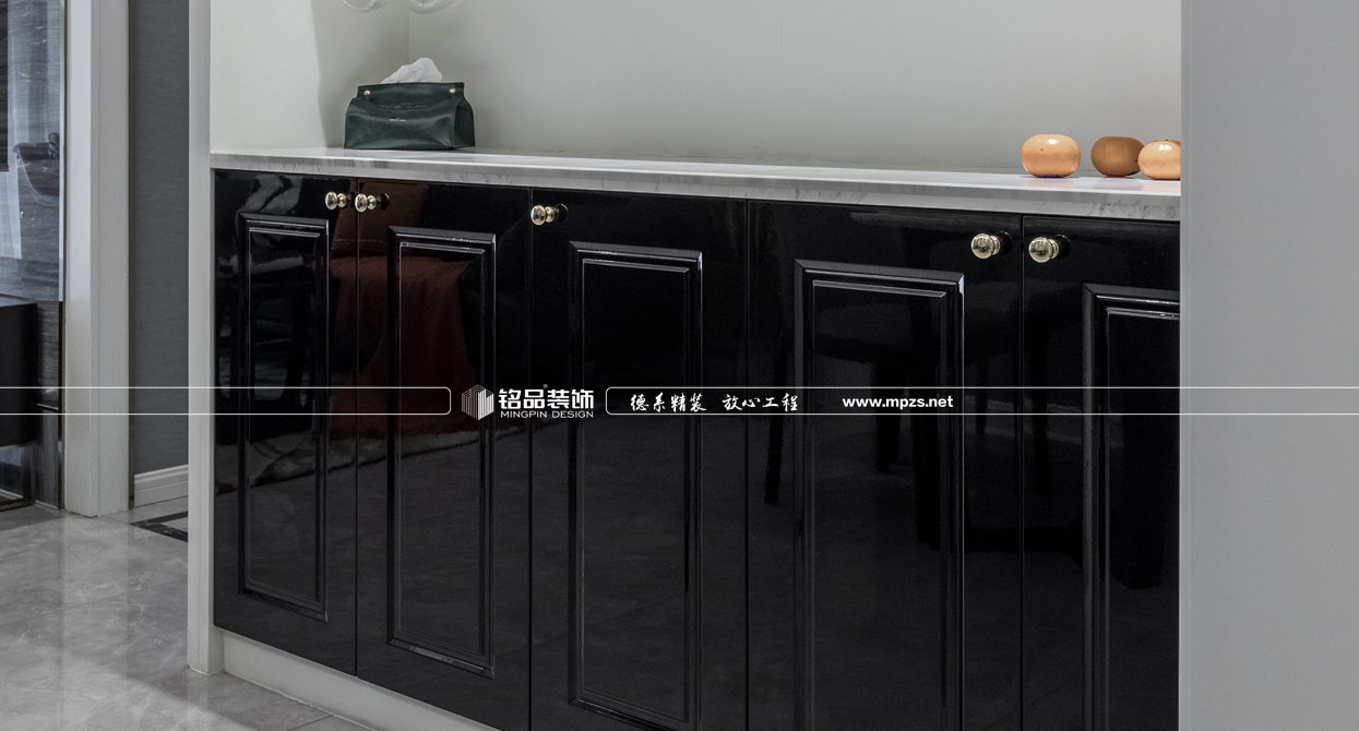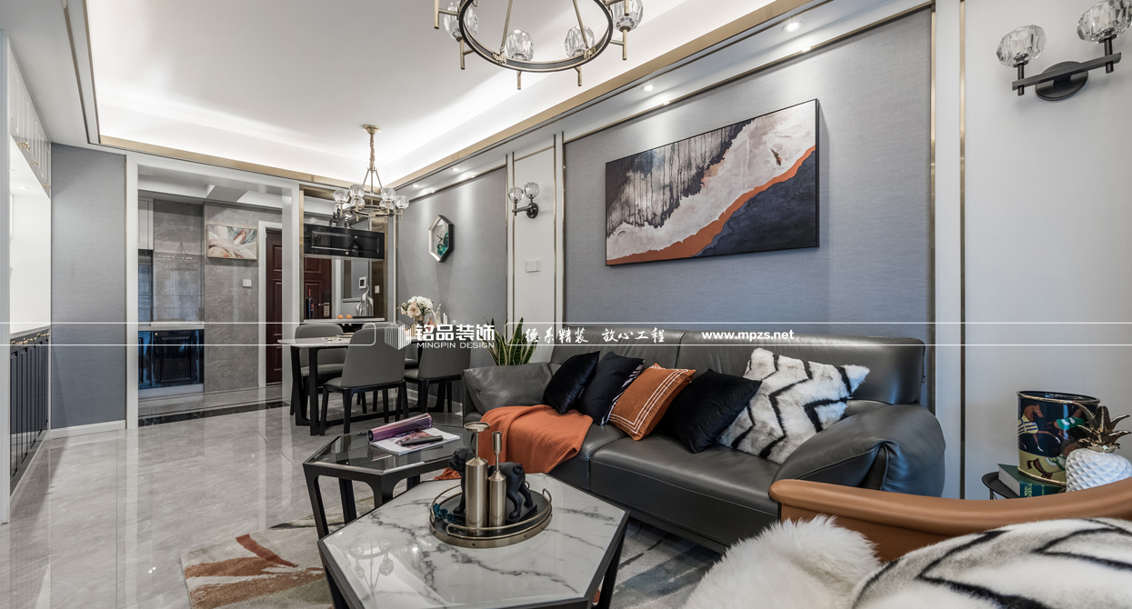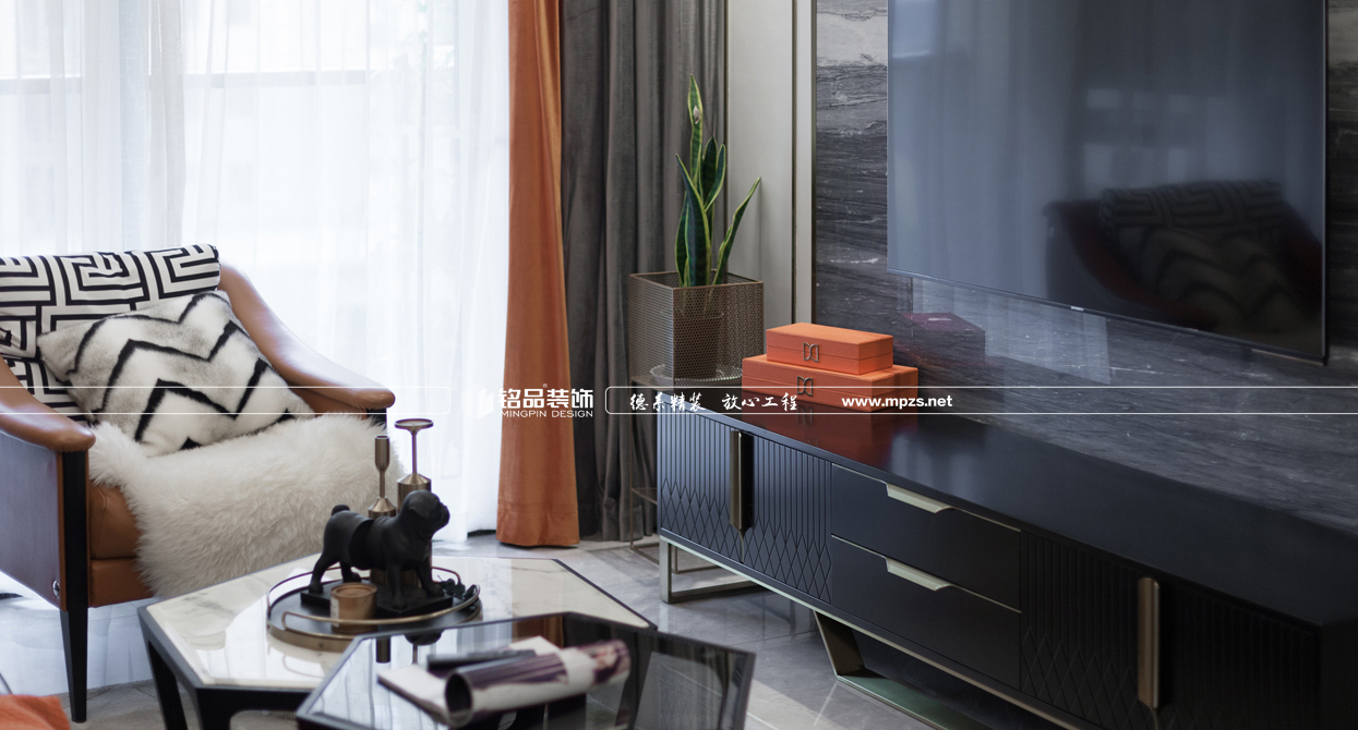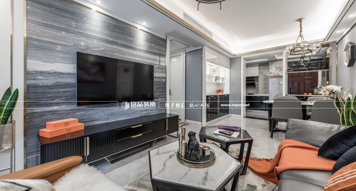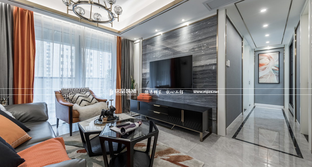 现代风格的装修从设计出发点以人为本为中心,创造功能合理、舒适优美、满足人们物质和精神生活需要的室内环境!户型结构方形构图、黑钛镶嵌,格局是从三房改四房增加房屋面积的使用率,整体的色彩搭配用黑白灰+橙的配色。让整体的装修风格更具协调。室内房屋装修设计师最终以四房两厅两卫一厨的格局,为业主带来新的装修效果体验。