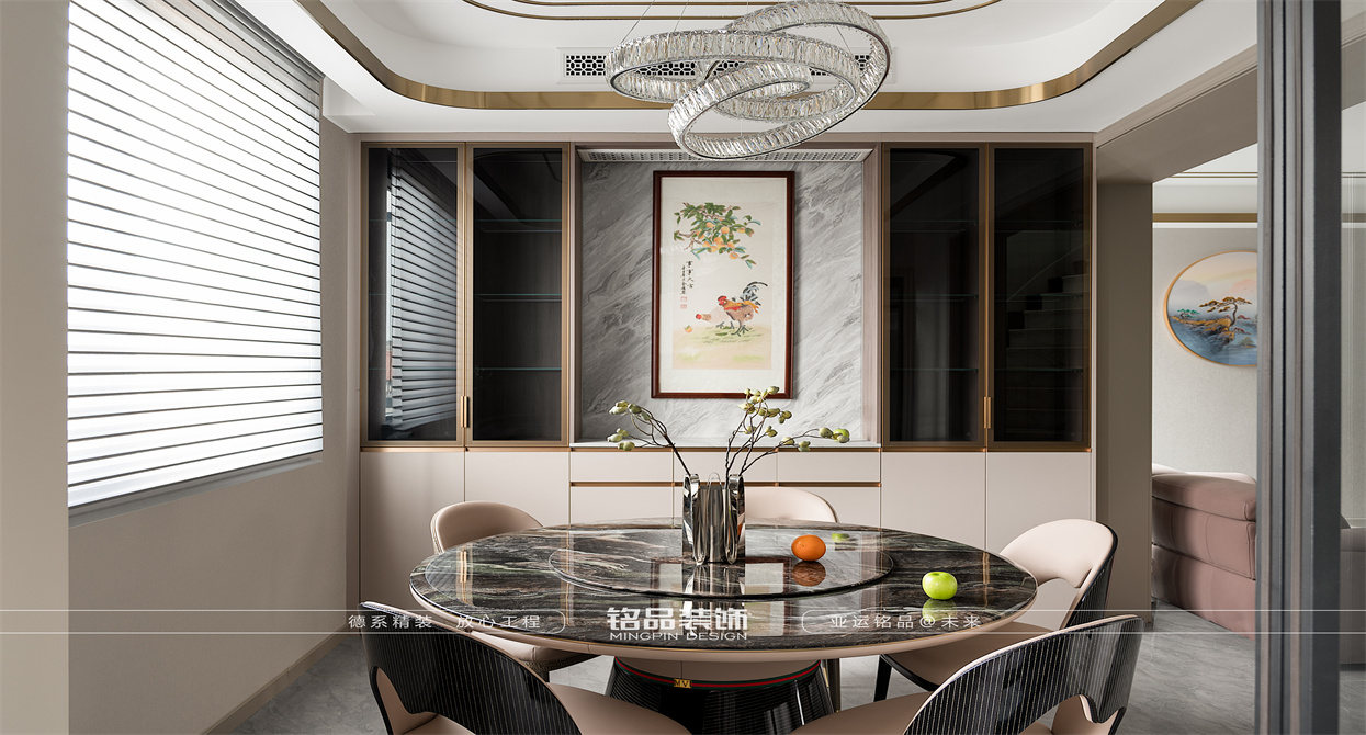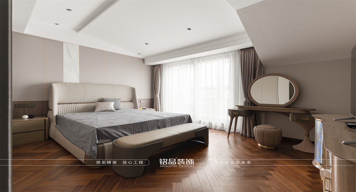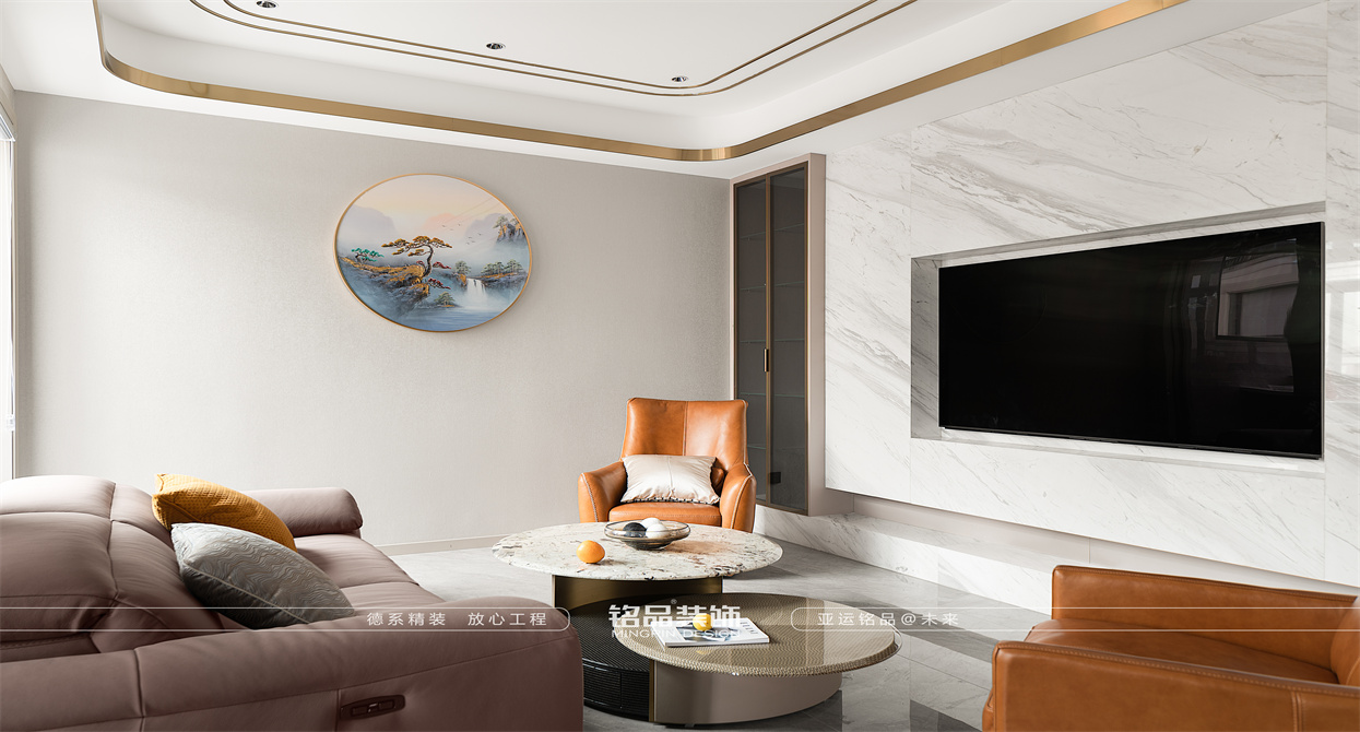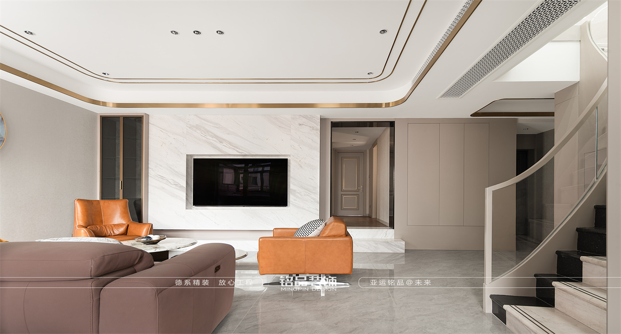 在装修效果上会呈现出一种简约、时尚,轻奢的感觉。在这样的环境会有舒适、放松,又有气派奢华,更多的是倾向于一种简单当中带有精致的感觉。处理手法工整简洁,整个空间以灰色调为主,同色系的手法,局部点缀色,使整个空间优雅,静谧。