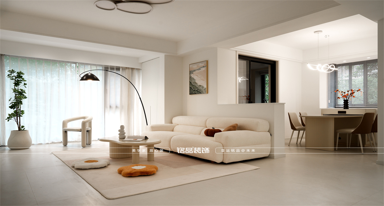 客厅餐厅采用开放式设计,连接餐厅和客厅,打造宽敞明亮的活动空间,多层次的照明设计,包括主灯、射灯和落地灯,通过落地灯,增加空间的温馨感,营造温暖的氛围。合理安排储物空间,保持卧室的整洁和私密。干湿分离,确保使用的便捷和卫生间 ,高品质的布艺窗帘,靠枕和地毯,增加舒适度